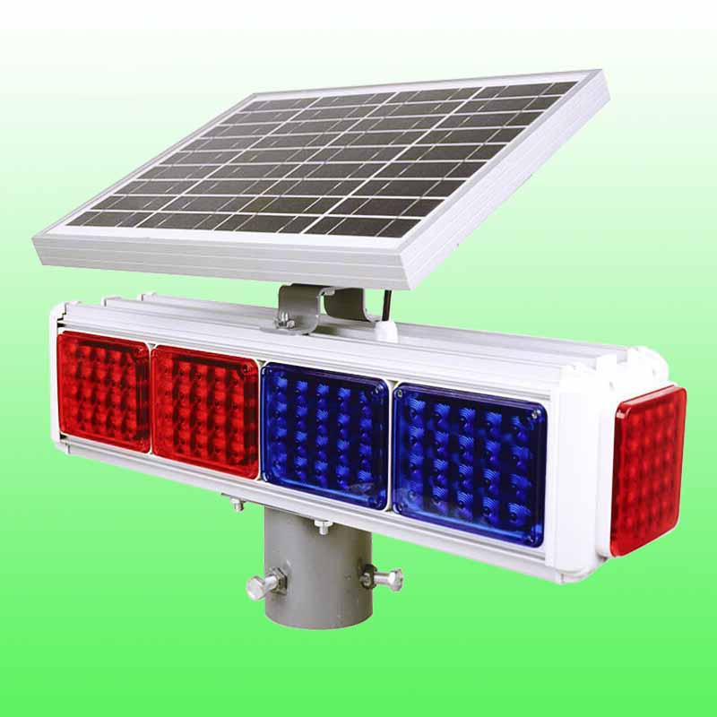 太阳能十灯爆闪灯特点:外壳由经氧化处理的铝材材组合,表面塑料喷漆,外观精美,长时间使用并不会出现锈迹斑斑,闪灯采用密封结构组合式灯组,每组20个超亮LED,真空镀膜反光板,亮度高,警示效果好,聚碳酸酯灯罩,抗冲击,耐老化,整灯的密封密封效果好,有很好的防水性,并配有过充电过放电保护功能。