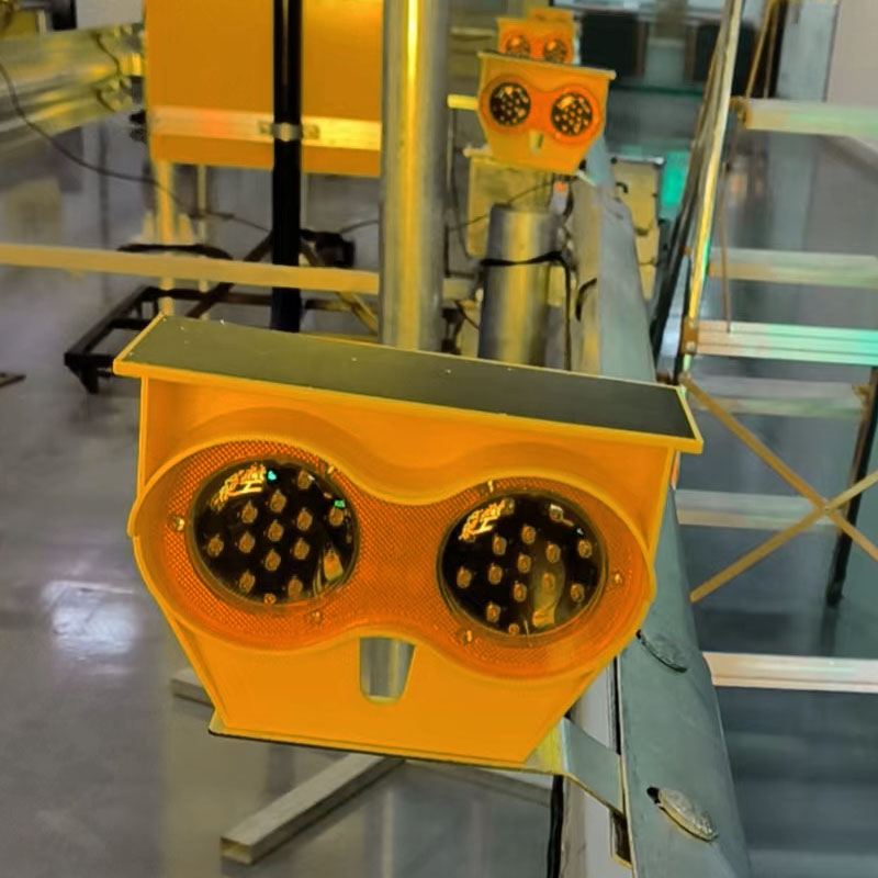 太阳能同步警示灯主要组成太阳能光伏板/供电使警示灯长期循环工作。主要用于矿区公路护栏/公路施工养护作业区域围栏/波形护栏等设施上通过无线同频技术形成智能视线引导公路延伸走向等,通道两侧使用太阳能同步警示灯,可有效展示通道宽度以及行驶通道走向,有效减少繁忙路段施工作业强度,提高安全通道通行效率。